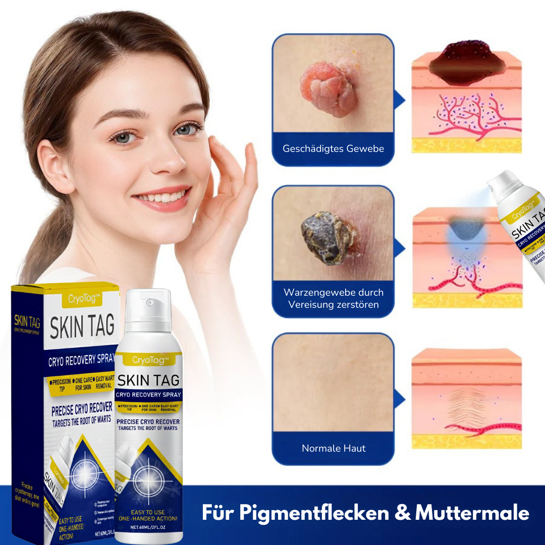 CryoTag™ Skin Spray | Unterstützt die Verbesserung der Hautstruktur in 7 Tagen! ist für alle Hauttypen gedacht, auch für empfindliche Haut. Wenn du sehr gereizte Haut oder offene Stellen hast, lass diese Bereiche aus.